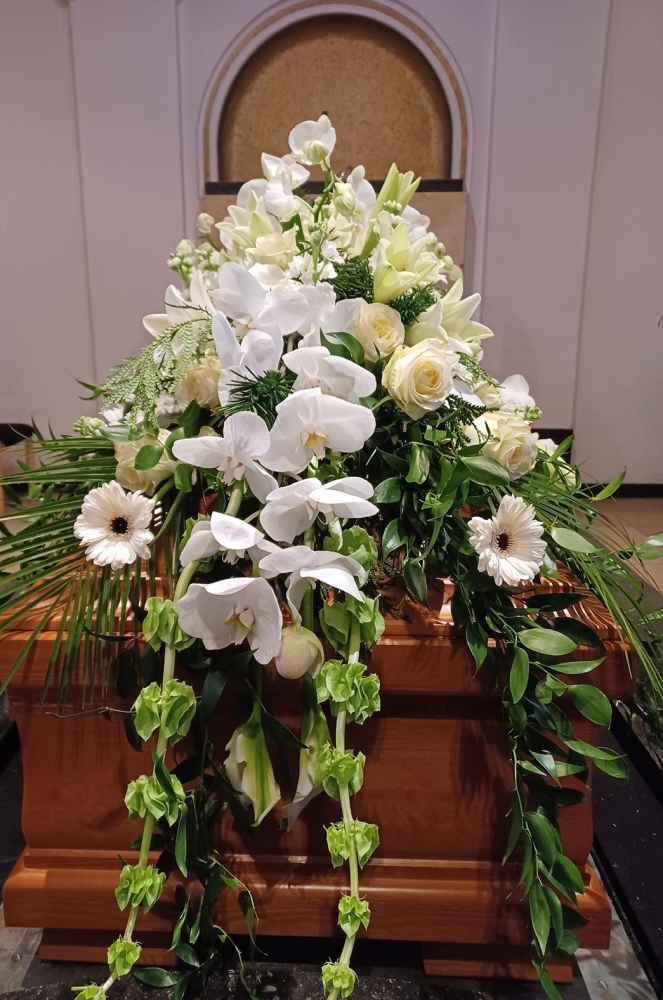 Trauerfloristik: floraler Sargschmuck